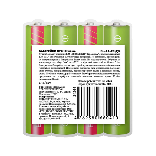 Батарейки DC AA/LR6 (4 шт) Зелений-Сірий