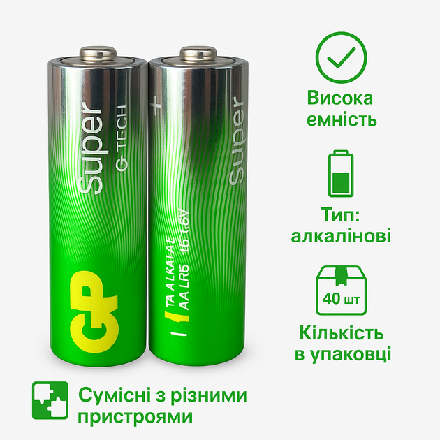 Батарейки пальчикові Super Alkaline GP AA LR6 40 штук Alkaline, лужні (124547445)