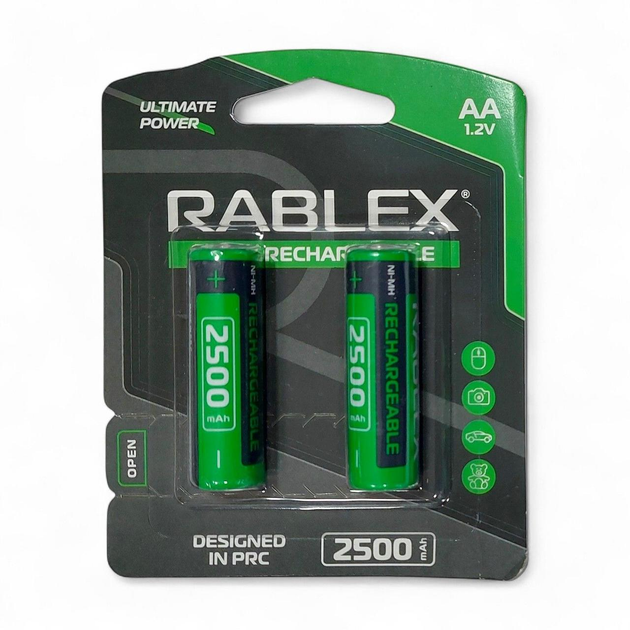 Батарейки акумуляторні Rablex АA / HR6 / R6 2500 mAh 1.2V Ni-MH пальчикові 2 шт.
