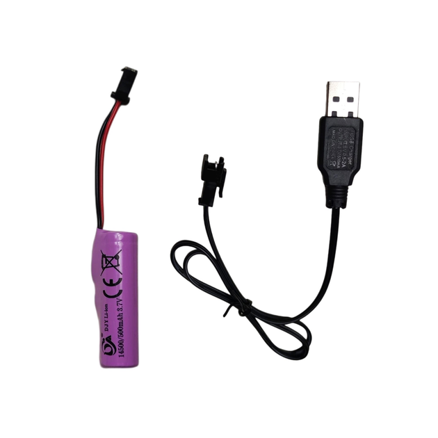 Комплект USB зарядний шнур + Акумулятор Li-ion 14500, 3.7V, 500mAh SM 2 pin для дитячої іграшки | Для радіокерованої машинки