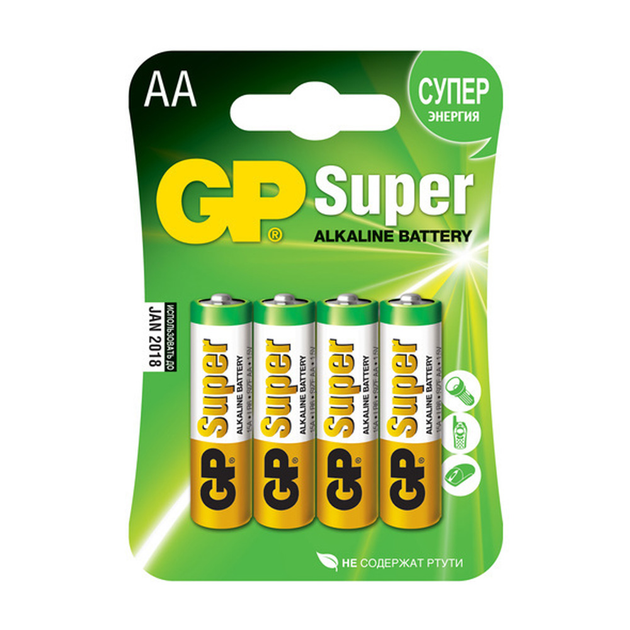 Батарейка GP Super AA лужна 1.5В 4 шт в блістері для пультів дистанційного керування іграшок та ліхтариків (TOR-JUG22B)