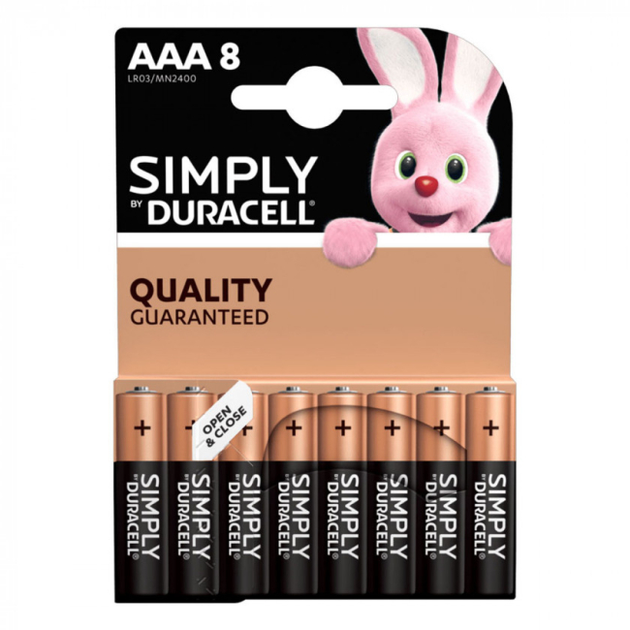 Батарейки лужні Duracell Simply AAA LR03 8шт (5000394002463) (10-570893)