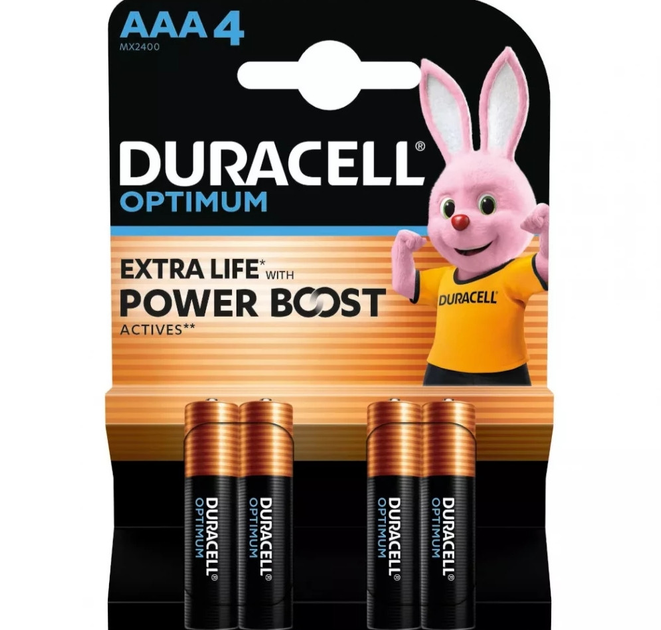 Батарейка Duracell Optimum, LR03 4шт AAA лужна