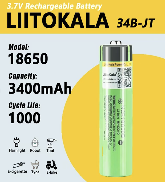 Акумулятор LiitoKala 34B-JT 18650 3400mAh 3.7V