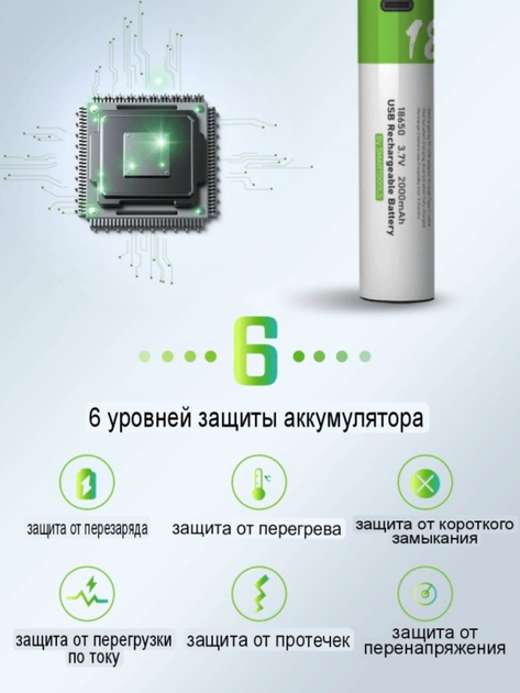 Комплект: 2 акумулятори — тип 18650 3,7 В — з роз'ємом TYPE-C Smartools 2000 mah + кабель TYPE-C