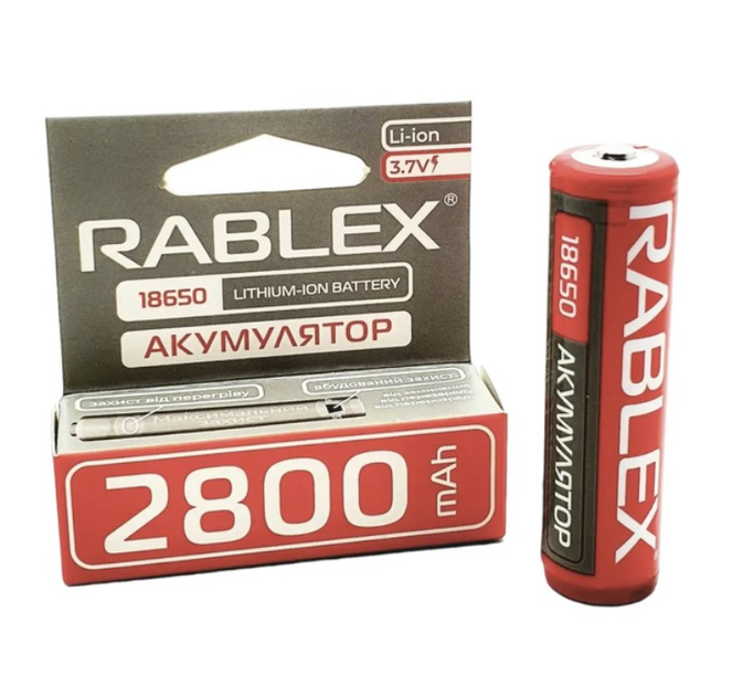 Акумулятор із захистом 2800 Mah Li-Ion 1865O 3.7V RABLEX Red