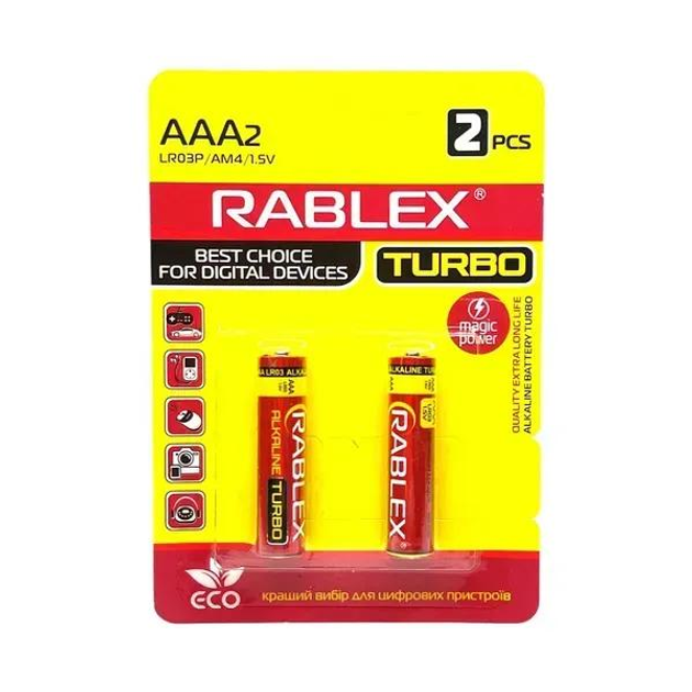 Батарейка Alkaline Rablex LR03P/AAA Turbo 2шт. Мініпальчикова