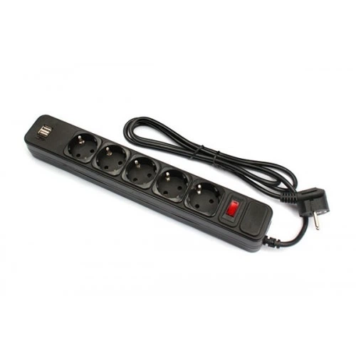 Фільтр мережевий 1.8м FrimeCom FC-BU4005W (2 USB), 5 розеток+2 USB, чорний