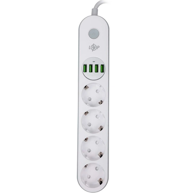 Мережевий фільтр-подовжувач LogicPower F24USB4 4 розетки, 4 USB порти 2m з вимикачем