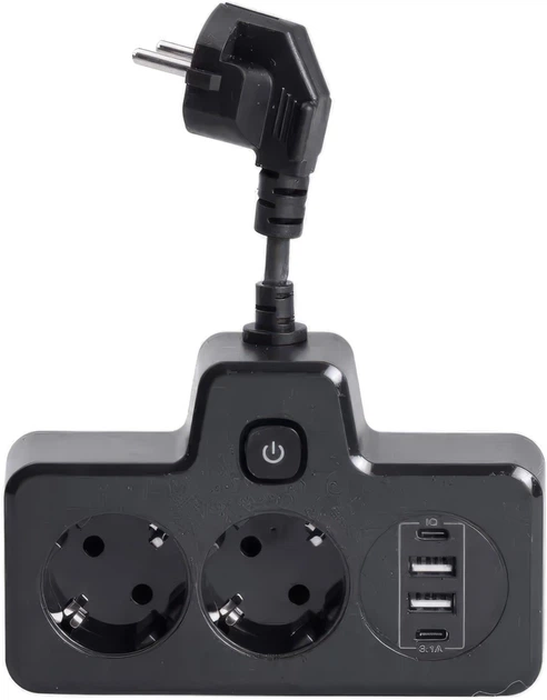 Мережевий фільтр-розгалужувач UFT 2 розетки LED 4 USB 8 см Чорний (LGHP-5-18)