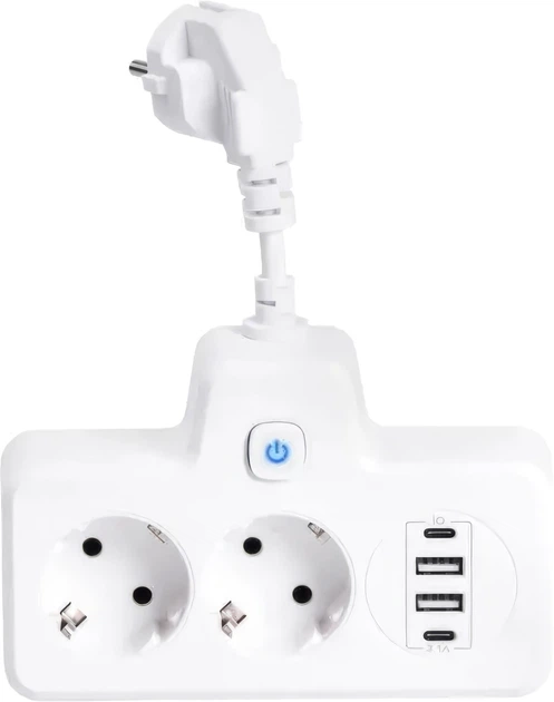 Мережевий фільтр розгалужувач трійник 4EU розетки з вимикачем + USB-C PD20W + 2 USB-A XO 2 м. 2500W/10A Білий