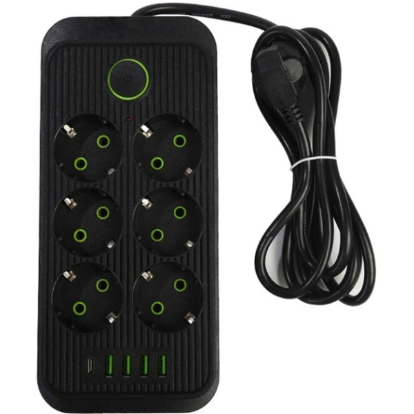 Мережевий подовжувач Earldom ES-SC24 (фільтр живлення, 3 USB, 6 USB-C, 55 Вт, 1 метр) - Чорний