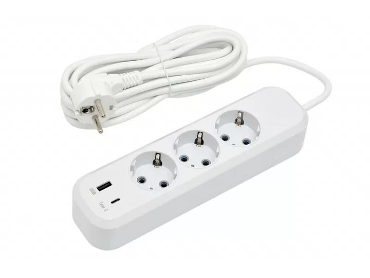 Мережевий подовжувач Luxel 3 розетки 5М із заземленням + USB+Type C (7165)