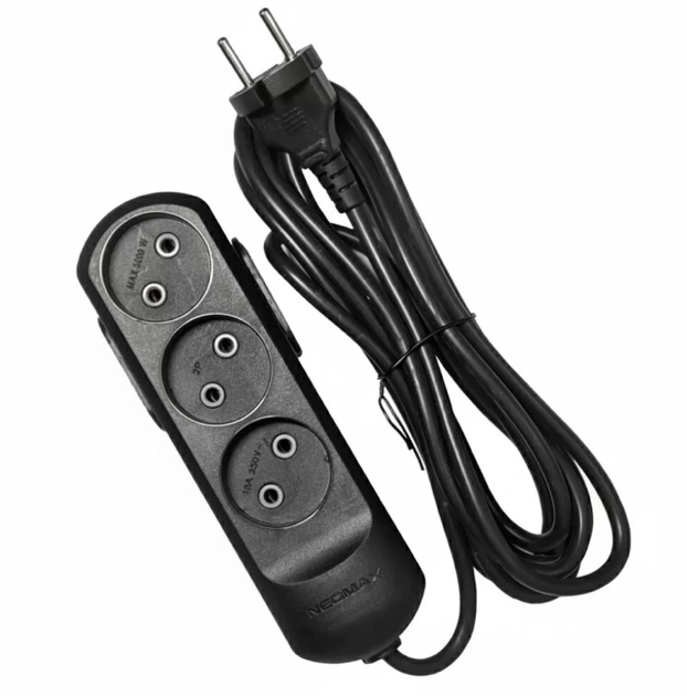 Подовжувач Neomax (Чорний, 5 м, 3 розетки) без заземлення (26540)