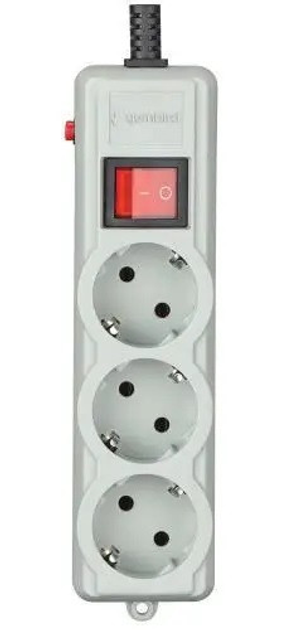 Мережевий фільтр Gembird PRO 3 розетки 3 м(3*1мм) із заземленням та вимикачем сірий до 3.5кВт 16А