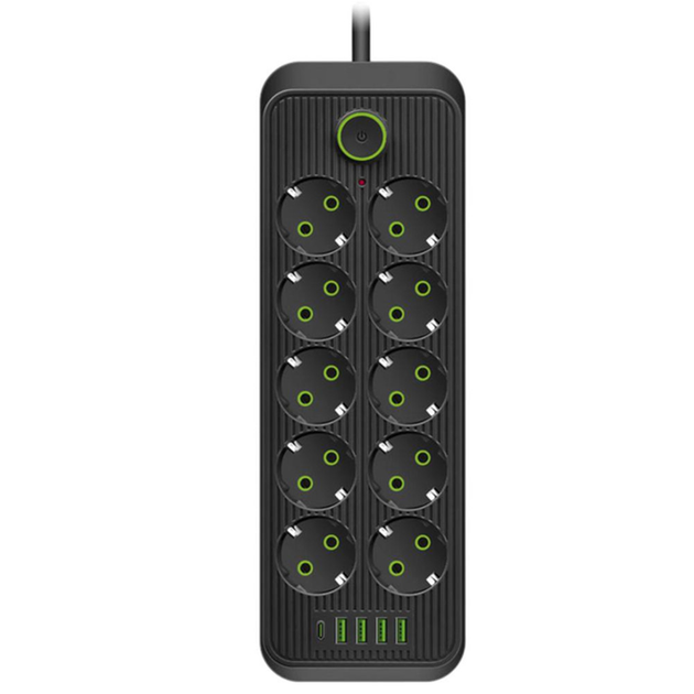 Мережевий фільтр-подовжувач QL-1077U 10 розеток 4-USB 2-Type-C чорний