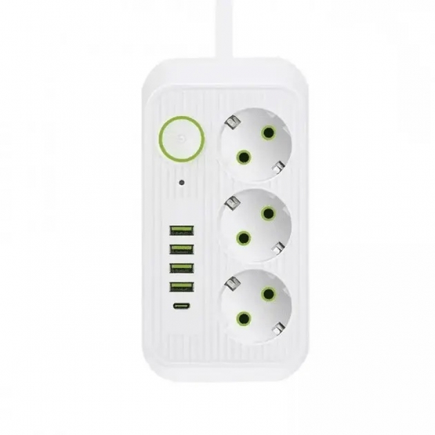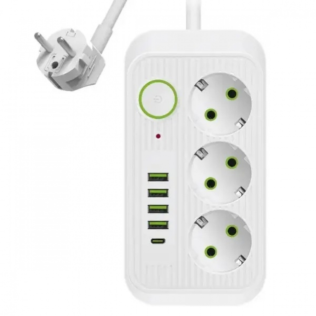 Мережевий фільтр-подовжувач 3м Power Strip 4 розетки 2xUSB-A 1xUSB-C із заземленням