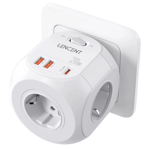 Мережевий фільтр, трійник LENCENT (3 розетки, 3 шт USB порта, 1 шт Type-C, швидка зарядка)