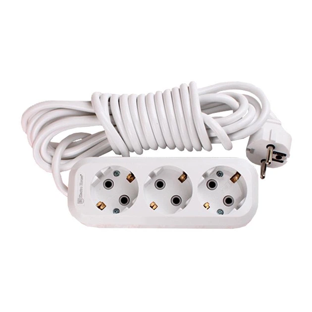 Подовжувач із заземленням 3 гнізда, 10 м, білий