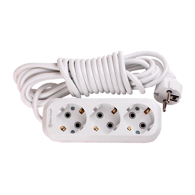 Подовжувач із заземленням 3 гнізда, 3 м, білий