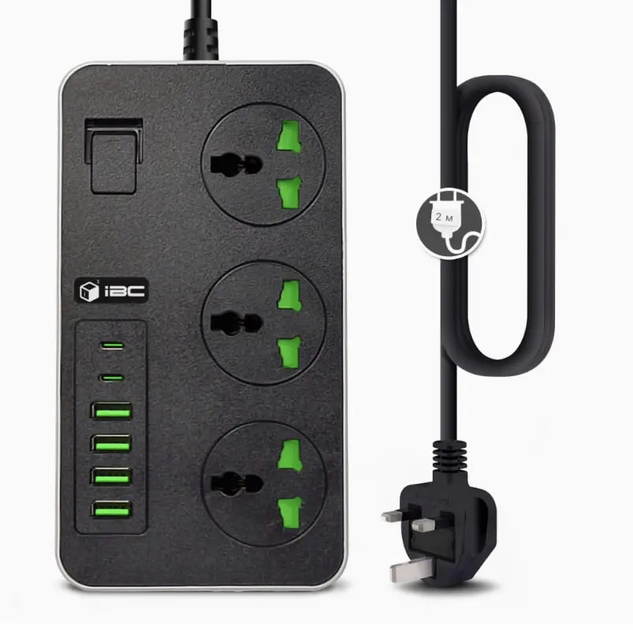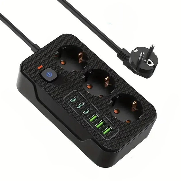 Мережевий подовжувач з USB+Type-C портами J07 3000W 2м Black