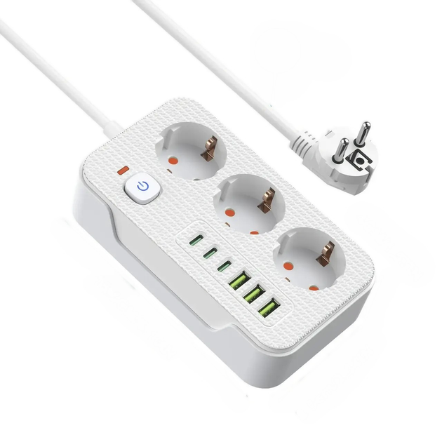 Електричний подовжувач з USB-портами Power Strip J3+6U, 2 м, 2500 Вт