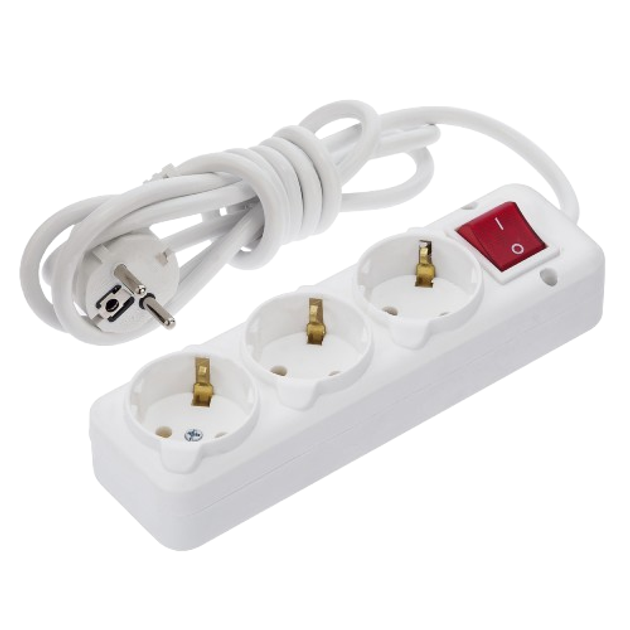 Мережевий подовжувач з кнопкою та заземленням NA-UEA 3 розетки та кабель 5м Білий