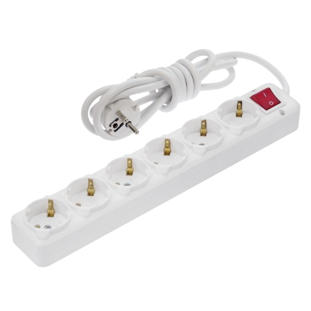 Мережевий подовжувач з кнопкою та заземленням NA-UEA 6 розетки та кабель 5м Білий