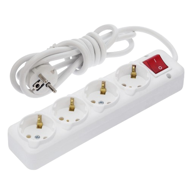 Мережевий подовжувач з кнопкою та заземленням NA-UEA 4 розетки та кабель 3м Білий
