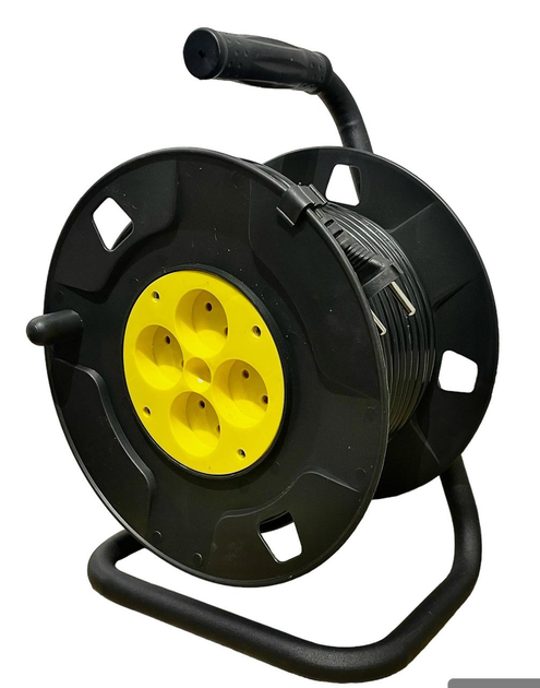 Подовжувач на котушці 20м з перетином дроту 3х2,5мм ЗЗЦМ. 4 розетки із заземленням. 4500Вт. 16А