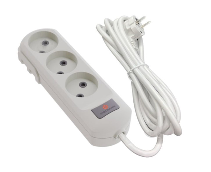 Подовжувач Neomax (Білий, 5 м, 3 розетки) з кнопкою без заземлення (26542)