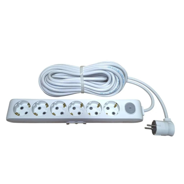 Подовжувач 6 гнізд 10 метрів 16А (3,5 кВт) із заземленням та вимикачем