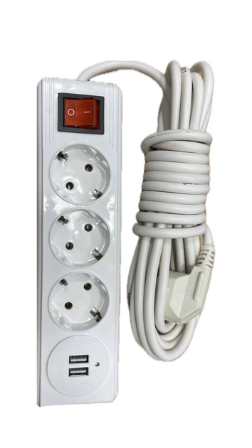 Підовжувач 3 гнізда 5М (провід 100 мідь) із заземленням, вимикачем USB MODERN ТМ LUMANO