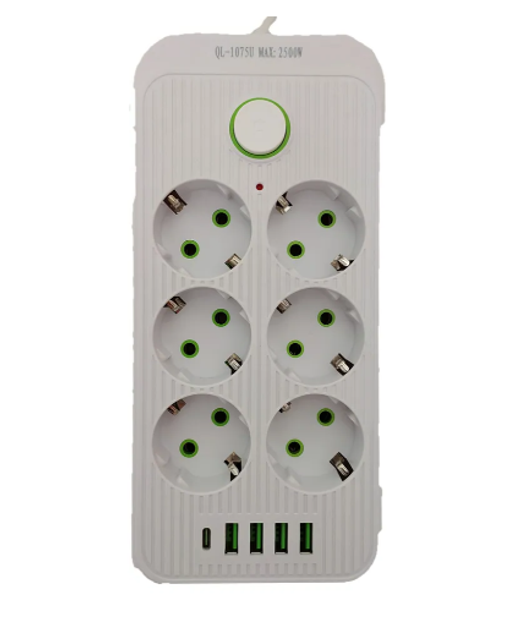 Подовжувач з usb зарядкою 3 метри, 6 розеток, Type C, фільтр мережевий із захистом, електро-мережевий фільтр