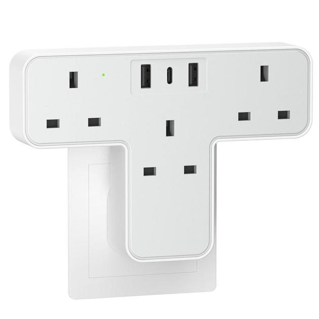 Трійник з USB штекерами 2 USB A і 1 Type C зарядкою, розетками