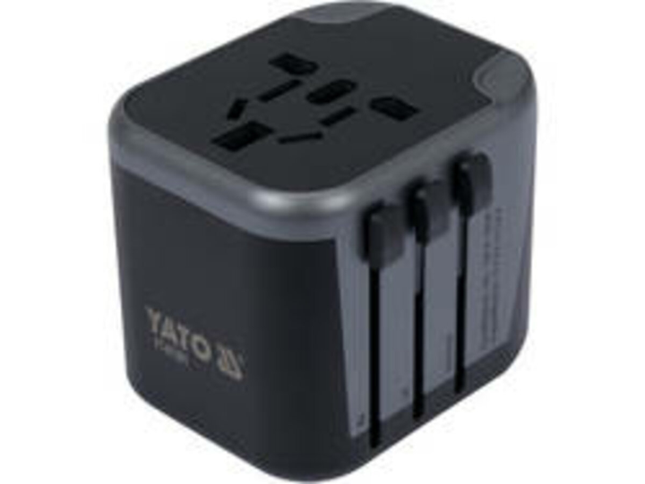 Розетка-адаптер електромережевий 110-240 В, до 8 А YATO з універсальним гніздом з USB,Type-C і вилками
