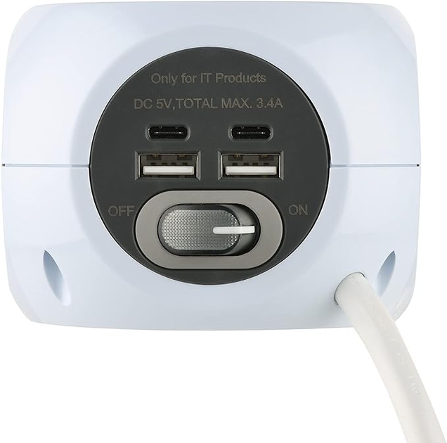 Мережевий фільтр подовжувач mini куб Electraline з вимикачем побутовий на 3 розетки універсальний 2 USB типу-A 1 USB типу-C