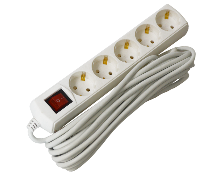 Подовжувач з вимикачем 5м 5 гнізд 2Р+PЕ IP20 [WYP10-10-05-05-GS-G-U] ECO UEC