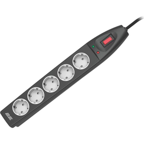 Подовжувач-фільтр мережевий 2E 5xТип F, 3x1.5мм кв, 16A, з захистом від перенапруги, 5м, чорний & 2E