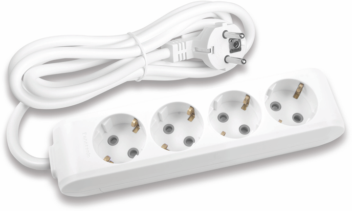 Подовжувач Panasonic X-tendia із заземленням 4 гнізда, 2 м, із захисними шторками, білий