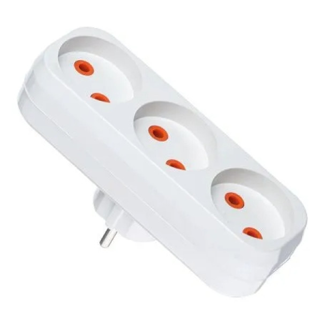 Трійник Horoz із заземленням білий