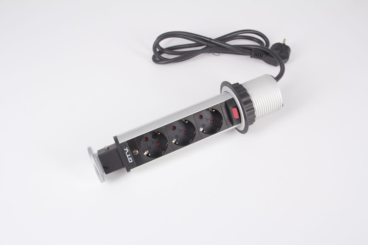 Настільний вбудований подовжувач GTV SCHUKO на 3 вилки D 60, сірий