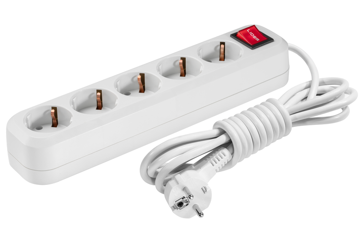 Подовжувач із заземленням та кнопкою Lider PROXIMA 5 гнізд 2 метри 16А (2763)