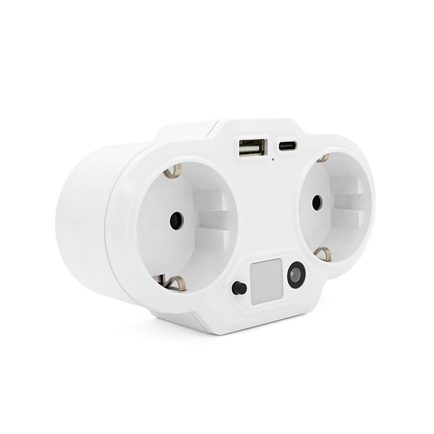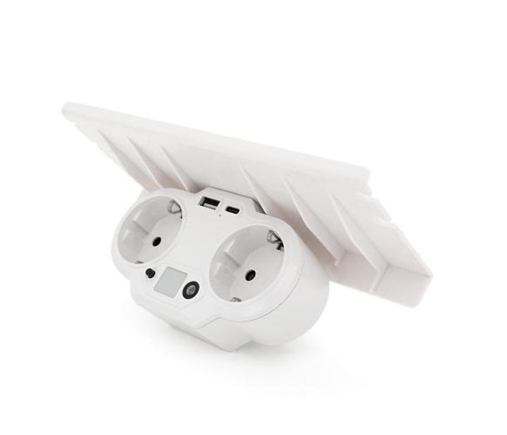Розетка двійник із заземленням HHT609W, USB+Type-C, 4А, зашита від перевантаження, підставка під телефон, White