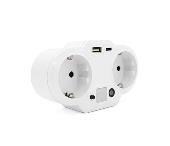 Розетка двійник із заземленням HHT609W, USB+Type-C, 3.4А, захист від перевантаження, White