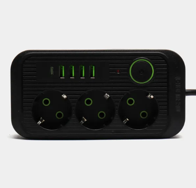 Подовжувач з usb роз'ємами, Type C, Мережевий фільтр переноска 3 розетки, електричний подовжувач