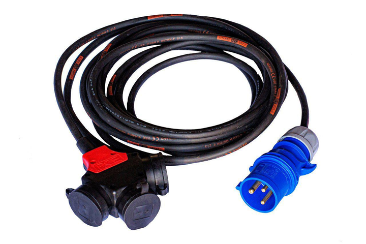 Підовжувач однофазний ASGM вилка CEE 32А - трійник гумовий, кабель H07RN-F 3G2.5, длина 10 м.