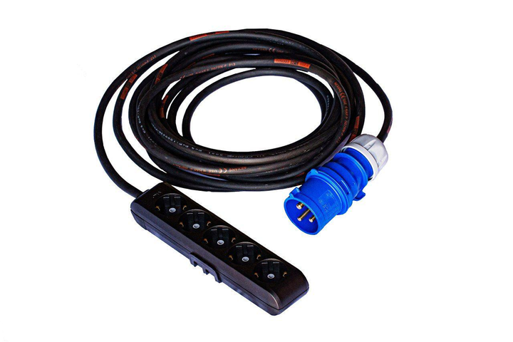 Підовжувач однофазний ASGM вилка CEE 32А - розетка 5 гнізд кабель H07RN-F 3G2.5 10 м.