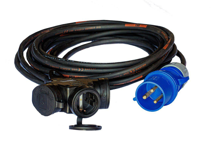 Підовжувач однофазний ASGM вилка CEE 32А - трійник гумовий, кабель H07RN-F 3G2.5, длина 15 м.