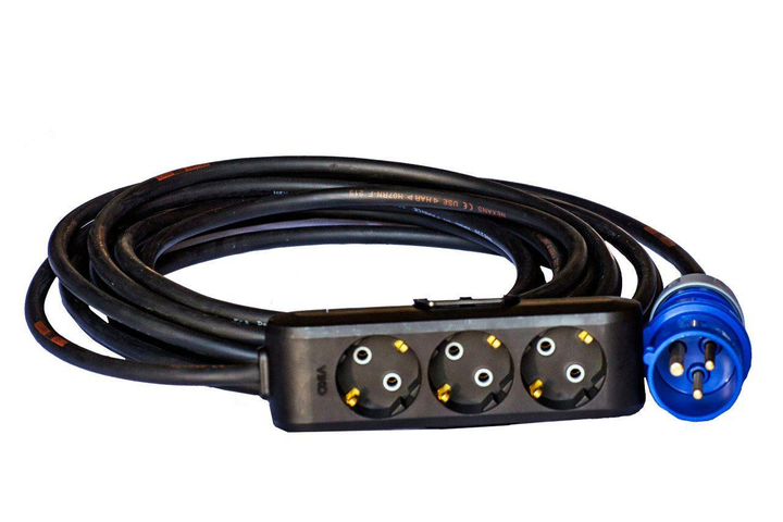 Підовжувач однофазний ASGM вилка CEE 16А - трійник гумовий, кабель H07RN-F 3G1.5, длина 10 м.